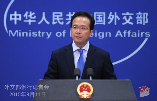 Hong Lei, the spokesperson of China's Foreign Ministry speaks at a press conference held in Beijing on September 11, 2015. [Photo: fmprc.gov.cn]