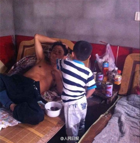 During this summer vocation, Wang Jianyu took care of his seriously ill father Wang Xiaotu in the ward. Wang, 6, with a height of less than 1.2 meters, is from Minsheng village, Shaoxing, east China's Zhejiang province. He hoped that his father can enjoy good health.