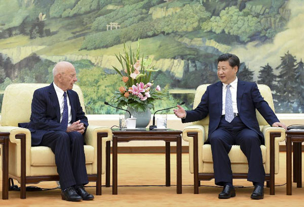 Chinese President Xi Jinping (R) meets with Rupert Murdoch, executive chairman of News Corp., in Beijing, capital of China, Sept. 18, 2015. (Xinhua/Xie Huanchi)