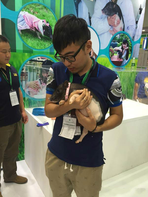 Remember the "hero pig" that was pulled out of the wreckage after the Wenchuan Earthquake in southwest Sichuan province in 2008? Its offspring piglets have now become pets and were very popular during their time on display at the Shenzhen International Biotech Summit on September 23, 2015.