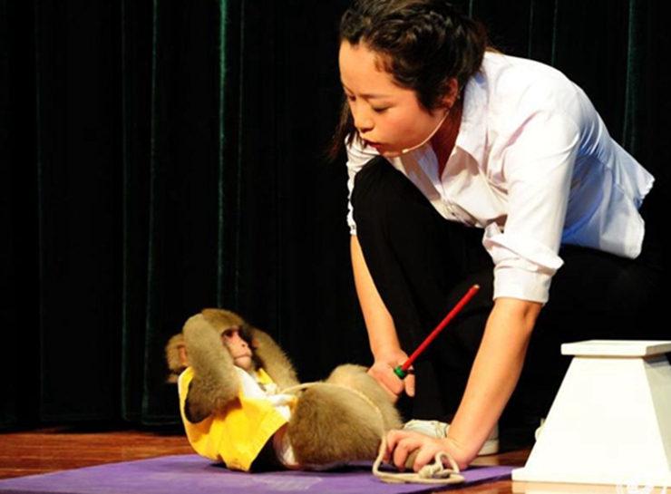 China’s first monkey school opens in Dongying, Shandong province on September 24, 2015. Thirty Japanese macaques, commonly known as snow monkeys learns shaking hands, salutes and counting numbers at the school. (Iqilu.com/Zhang Wei)