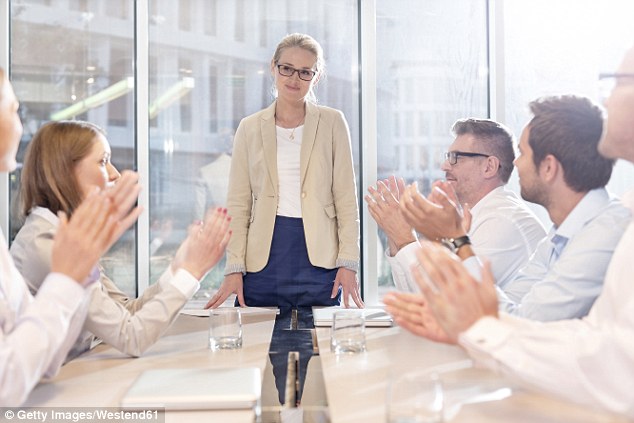 American professors Adam Galinsky and Maurice Schweitzer have devised the 'E' trick, which they believe separates those who are boss material from those who aren't (Picture posed by models)