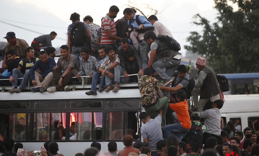 File photo: People in Nepal crowded public transportation due to recent fuel crisis.
