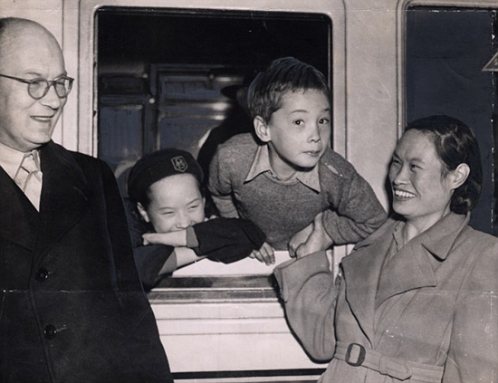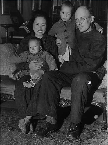 Michael Lindsay, his wife Hsiao Li, and their two children in Oxford, December 1945. (File photo provided by James Lindsay)