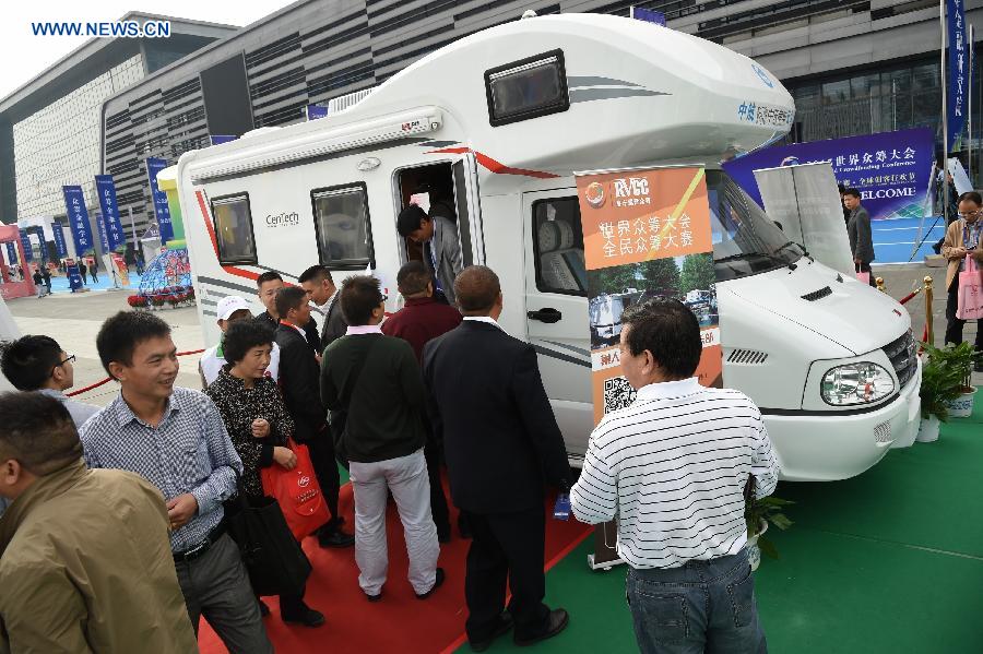 A startup project is illustrated during the 2015 World Crowdfunding Conference which kicked off on Saturday in Guiyang, capital of southwest China's Guizhou Province, Oct. 24, 2015. The conference is held under the theme of "Promoting Entrepreneurship Innovation and Creatives" and aimed at providing a communication platform for the startup entrepreneurs and investors. (Xinhua/Liu Xu)