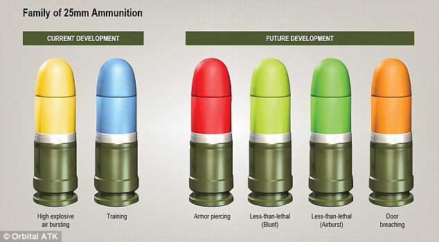 The 25-millimetre round contains a chip that receives a radio signal from the gunsight to find out the precise distance to the target