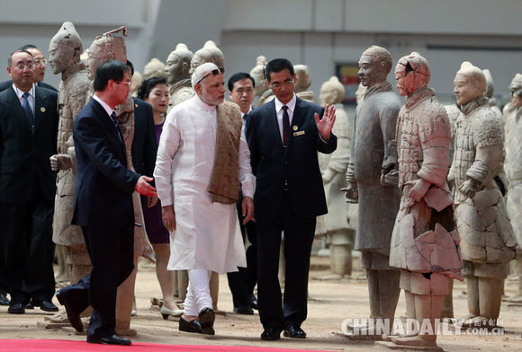Prime Minister of India Narendra Modi visits Terra-Cotta Warriors in Xi'an (Photo/Chinadaily)