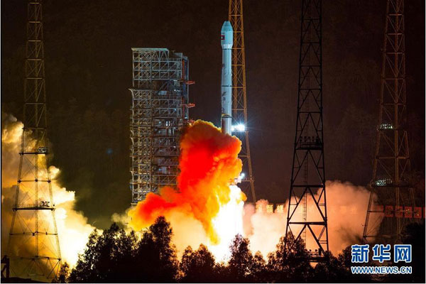 The satellite Lao Sat-1 is launched on Saturday at the Xichang Satellite Launch Center in Southwest China’s Sichuan Province. [Photo: Xinhua/Qin Haishi]