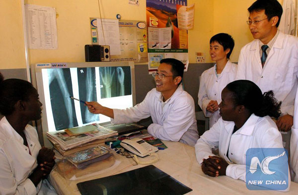File photo shows doctors of the 11th Chinese medical team in Uganda training Ugandan medical workers at Jinja hospital in Jinja, the second largest city of Uganda. (Xinhua)