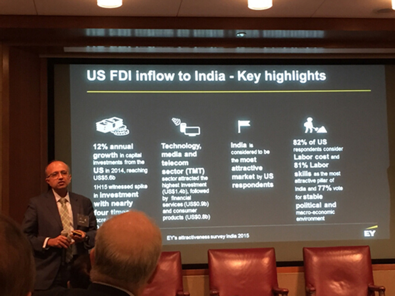 In terms of major challenges in US investments in India, SudhirKapadia, the partner & National Tax Leader at EY India, stated two major aspects. "Speedier advancement of the infrastructure manufacture is needed to help with the growth of the businesses", Kapadia then explains the second point being certainty in tax policy, "India will announce more details in February 2016 to give more certainty in tax policy, that will be very confirming to the investors."