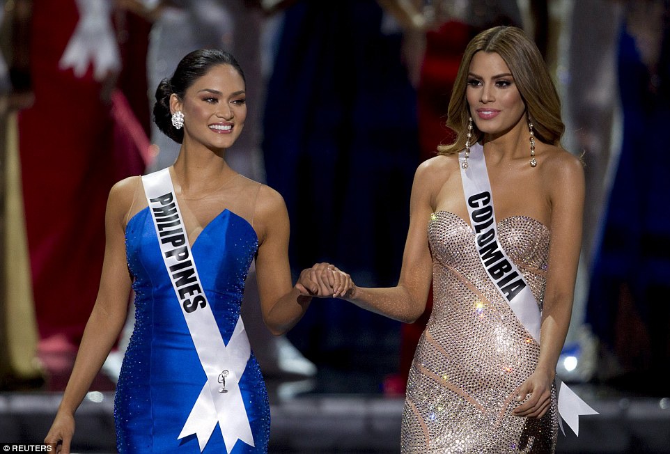 Wurtzbach and Gutierrez had held hands as they waited for Harvey to first call the winner of the Miss Universe 2015 pageant