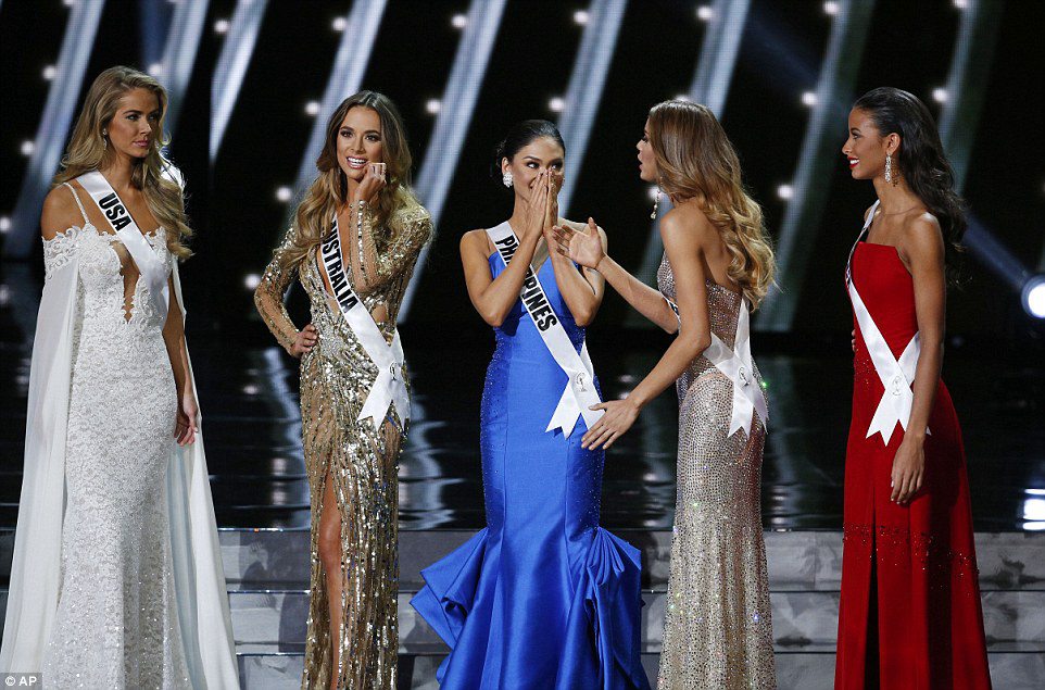 My mistake! Disaster on Miss Universe 2015 as Steve Harvey announces the WRONG winner - and then Miss Colombia has to take off her crown and give it to Miss Philippines on live television (20)