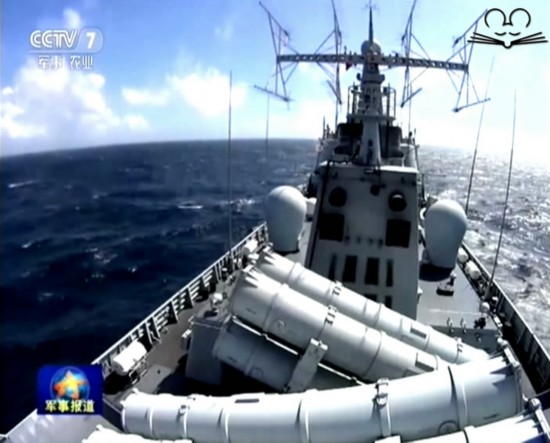 Frigates, submarines, early-warning aircrafts, fighter jets and other types of military vessels from the Navy's North Sea, East Sea and South Sea fleets travel a long distance and participate in a massive combat exercise in the South China Sea last Wednesday.(Source: CCTV screenshot)