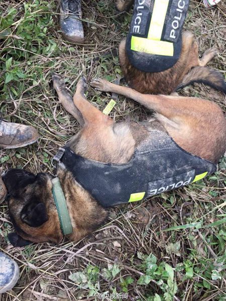 This rescue dog is named A Mai. A Mai had been searching for life for a whole night from Dec. 21 to Dec. 22, 2015. He falls asleep as soon as his head touched the ground. (Photo: CCTV, Zhang Lili)