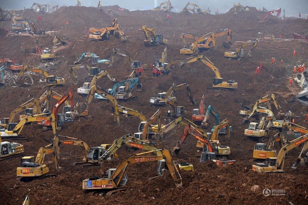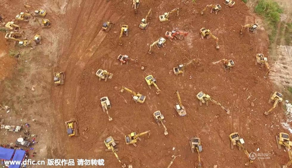 The aerial photos show that hundreds of excavators and heavy-duty machines are working intensively day and night at the landslide site in south China’s Shenzhen on December 22, 2015.