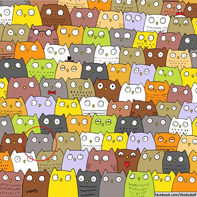 Just days after the panda swept the internet another illustration featuring a cat hidden in plain sight among dozens of brightly coloured owls has left thousands of people flummoxed