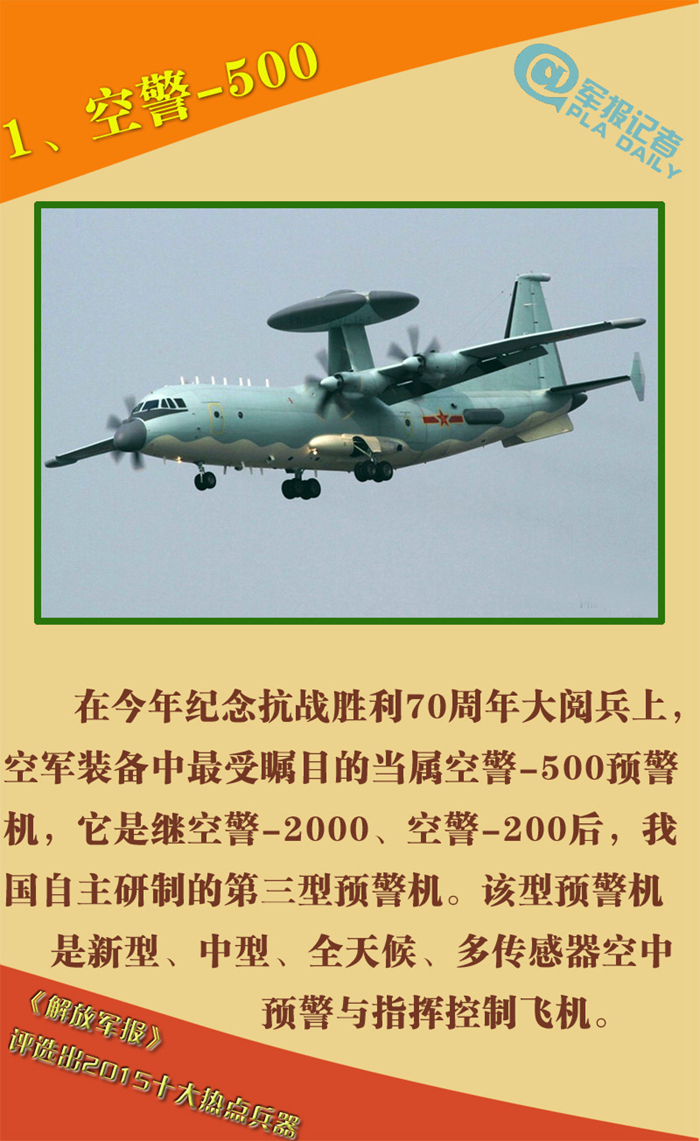 The People's Liberation Army Daily has recently selected 10 most eye-catching weapons in the world in 2015.