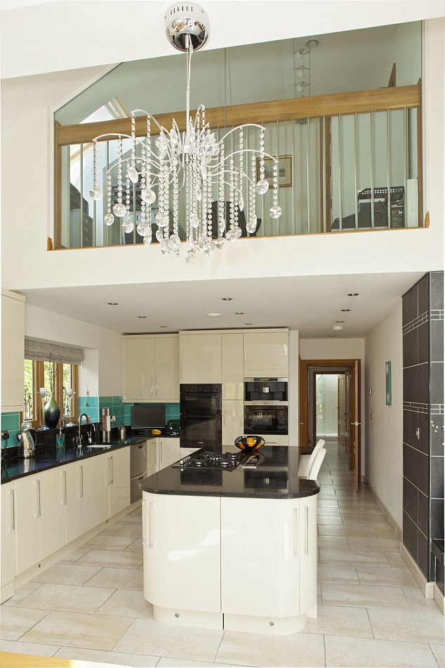 The stunning property - including this modern kitchen - is super-insulated, built using 10in-thick polystyrene panels in the walls and roof