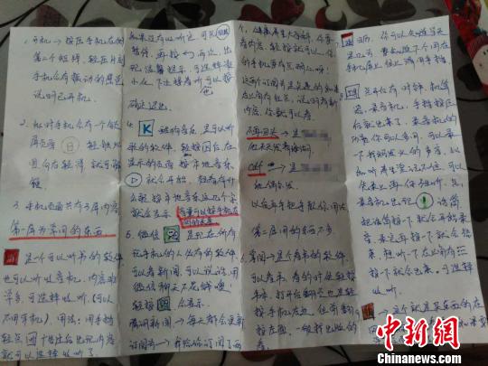 She gives detailed instructions for the functions of the phone, from turning it on to unlocking. "You can record the sound of my mother when she is angry in daily life," a sentence was written in the recording function of phone. At the end of the manual, the daughter warmly reminds her father to protect eyes.