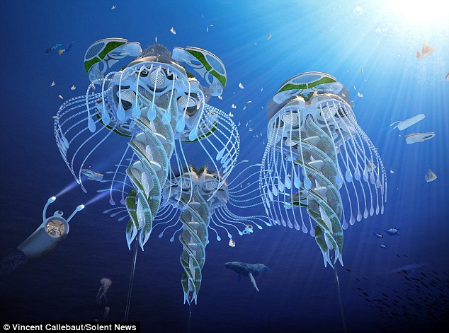 Mr Callebaut suggests that these eco-villages, which are 500 metres wide and have 250 floors, are spread across the world's major oceans.