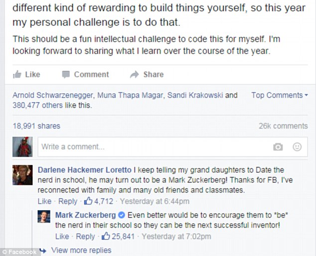 Facebook founder Mark Zuckerberg posted about his personal goal for 2016 - but it was a grandmother's innocent but old-fashioned comment about her granddaughters that got everyone's attention
