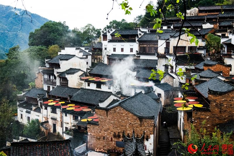 In autumn, the villagers in Huangling take out corn, chili peppers and chrysanthemum flowers to dry them in the sun. This tradition is called "shaiqiu" in Chinese.(Photo/people.cn)