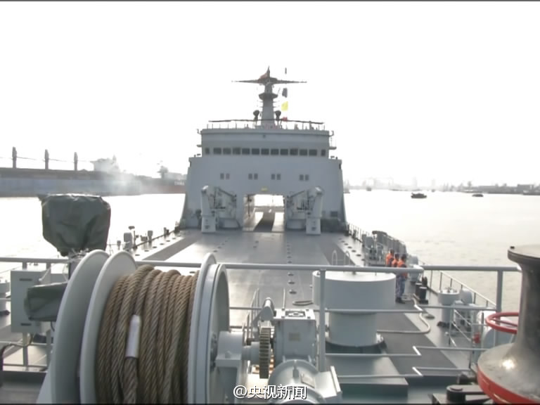 Independently designed and built in China, the landing ship measures 119.5 meters long and 16.4 meters wide. With a maximum displacement of 5,008 tons, the ship can sail at a speed of up to 20 knots.