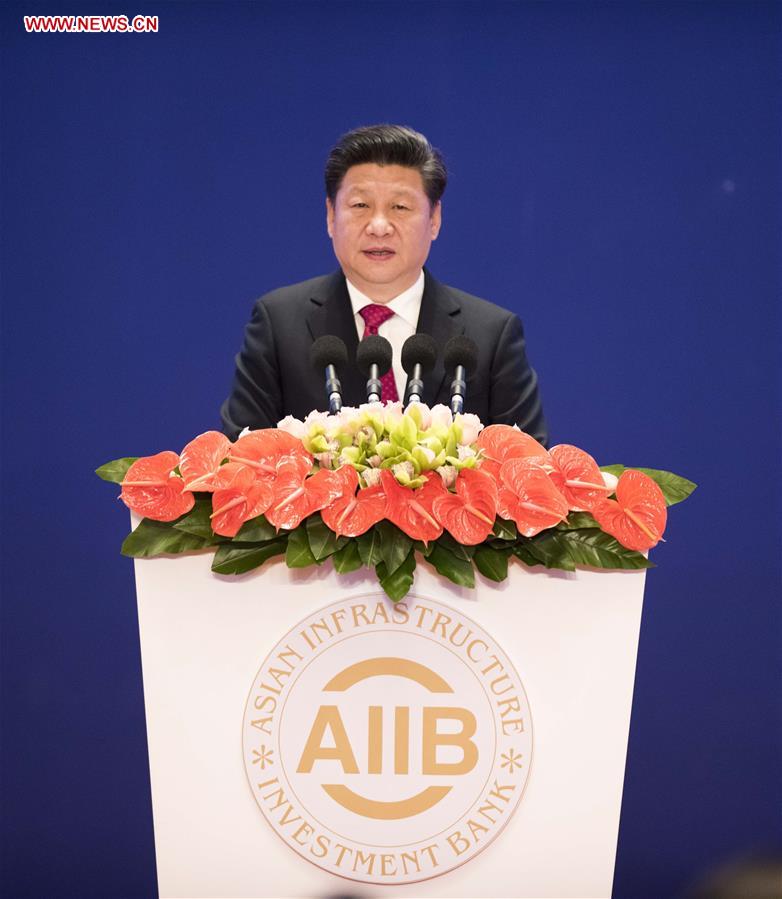 Chinese President Xi Jinping addresses the opening ceremony of the Asian Infrastructure Investment Bank (AIIB) in Beijing, capital of China, Jan. 16, 2016. (Xinhua/Li Xueren)