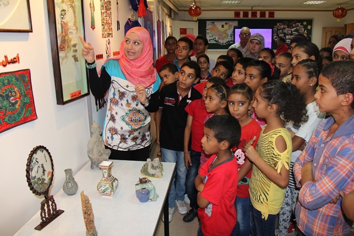 A teacher introduces Chinese culture and crafts to local elementary students at a Cairo-based China Cultural Center.