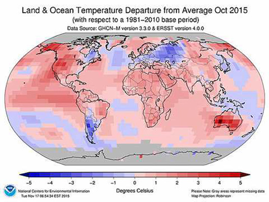 "This was the highest among all 136 years in the 1880-2015 record, surpassing the previous record set last year by 0.16 degrees Celsius and marking the fourth time a global temperature record has been set this century," the NOAA report wrote.