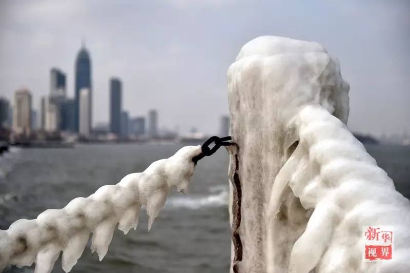 Photo taken on Jan. 19, 2016 shows fence covered with icicles at a wharf in Yantai, east China's Shandong province. (Xinhua/Chu Yang)