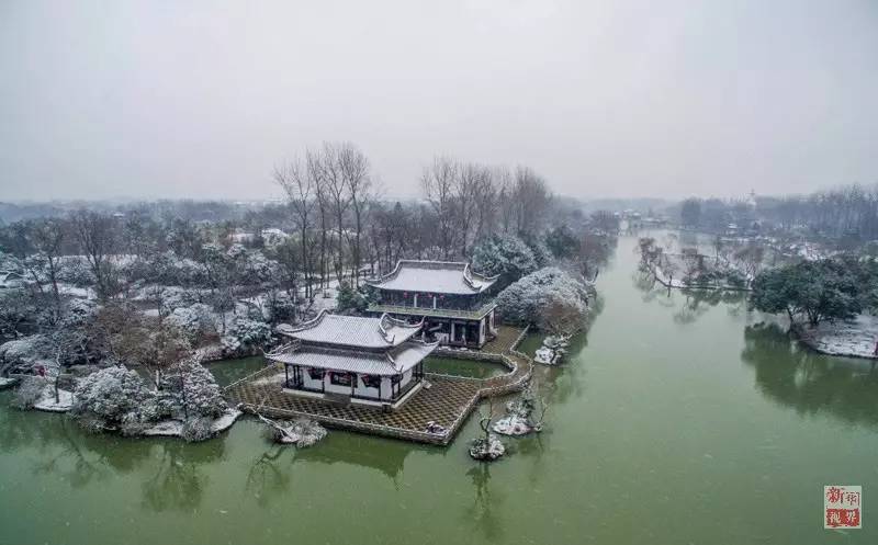 Aerial photo taken on Jan. 21, 2016 shows snow scenery in the Slender West Lake in Yangzhou, east China's Jiangsu province. (Xinhua/Wang Zhuo)