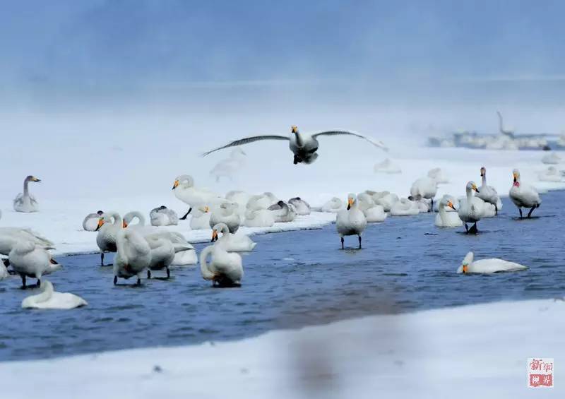 White swans gather in the swan lake in Rongcheng, east China's Shandong province on Jan. 18, 2016. (Xinhua/ Yang Zhili)