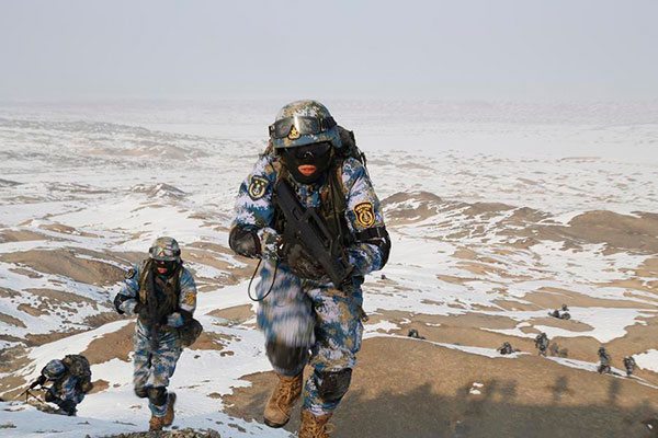 Chinese military forces aim to improve combat capabilities in extreme cold weather, Jan 10, 2016. [Photo/Xinhua]
