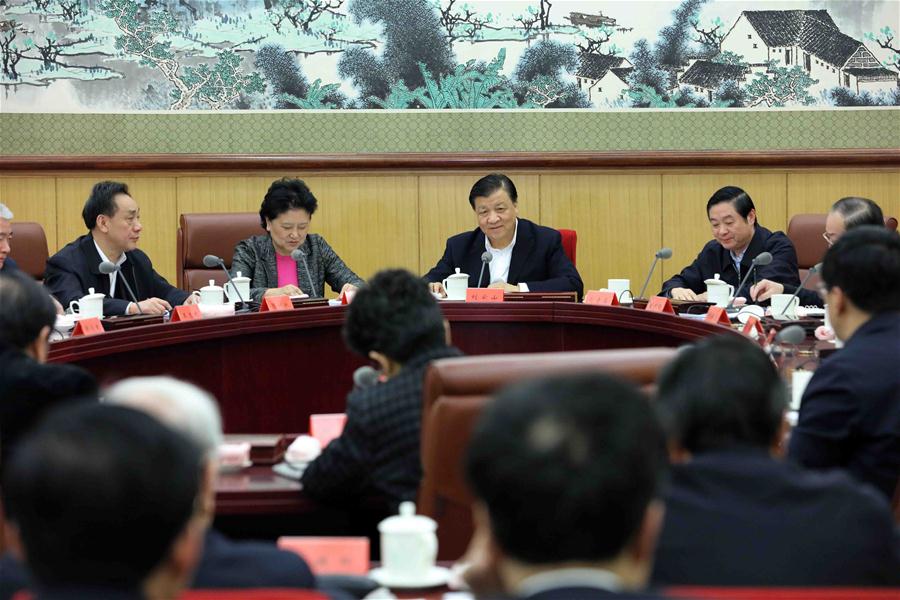 Liu Yunshan (2nd R back), a member of the Standing Committee of the Political Bureau of the Communist Party of China (CPC) Central Committee and director of the Central Commission for Guiding Ethic and Cultural Progress, presides over the 4th plenary meeting of the commission in Beijing, China, Jan. 27, 2016. (Xinhua/Liu Weibing)