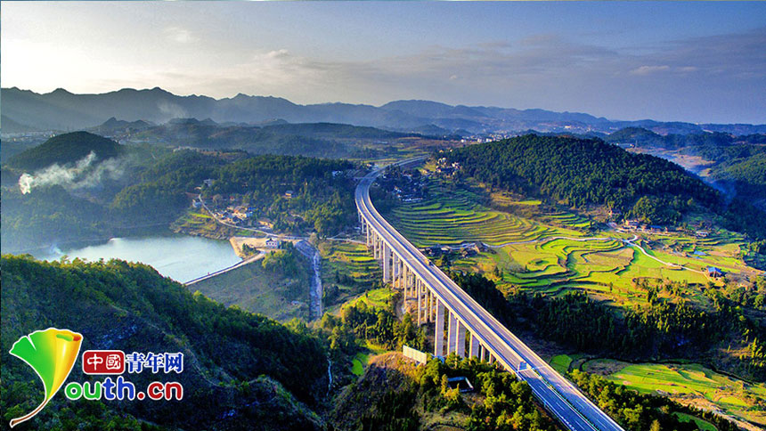 Yuqing-Anlong expressway passes Danzhai county. At the end of 2015, the goal of 'expressway for every county' was realized in Guizhou province. The total expressway mileage reaches 5,100 kilometers. (Youth.cn/Zhang Yanliang)