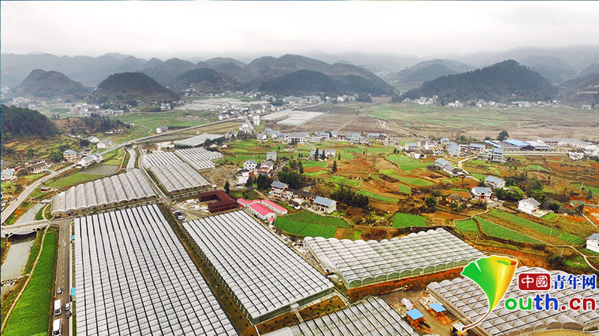 Greenhouses equipped with intelligent temperature-control scatter in Huamao village in Zunyi county. They give impetus to economic development and promote local employment. (Youth.cn/Zhang Yanliang)