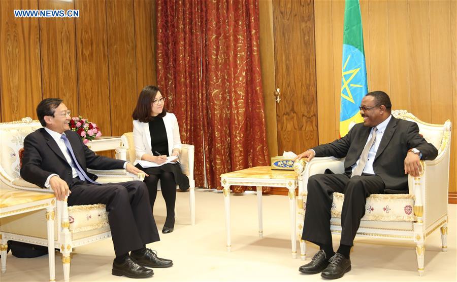 Chinese Vice Foreign Minister Zhang Ming (L) meets with Prime Minister of Ethiopia Hailemariam Desalegn in Addis Ababa, Ethiopia, on Jan. 28, 2016. (Xinhua/Pan Siwei)