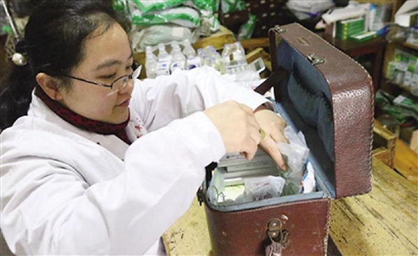 Li Juhong prepares for paying visit to patient's home. (Photo/chinacqsb.com)