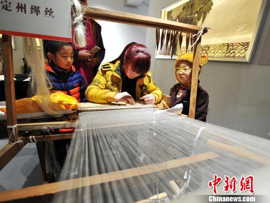 A woman presents the Kesi (Chinese silk tapestry). It is regarded as the 'king of fabrics' in China. (CNS/Zhai Yujia)