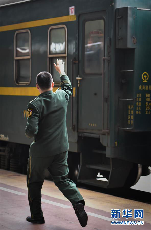 Pan waves goodbye to his wife at a train station in south China's Guangdong Province on Feb. 3, 2016. [Photo: Xinhua]