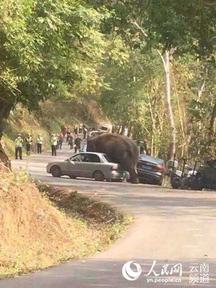 The elephant, named Zhusunya, left the Yexianggu (Wild Elephant Valley) scenic area in Xishuangbanna Dai Autonomous Prefecture and played on the G213 highway for about 20 minutes, during which it dented and damaged vehicles parked along the roadside.