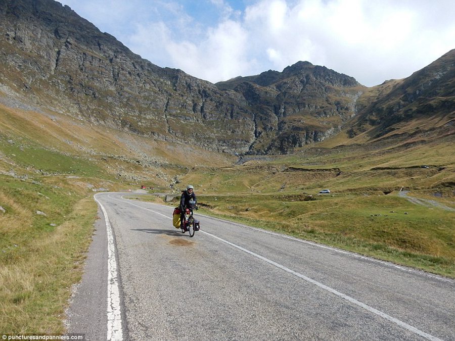 'Awesome riding,' the two captioned this picture of a bearded Andre taking on the mountainous terrain of Romania