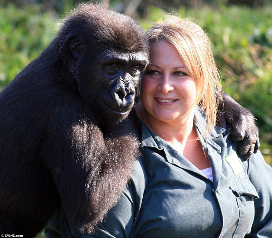 Mother: Kera the Western Lowland gorilla is pictured with keeper Mel Gage when she arrived at Bristol Zoo in 2008