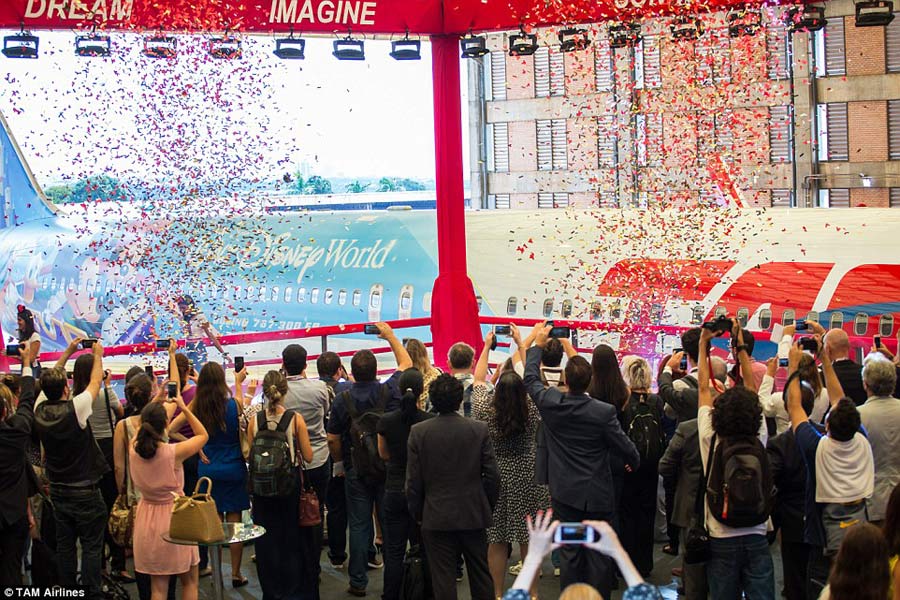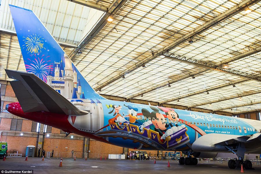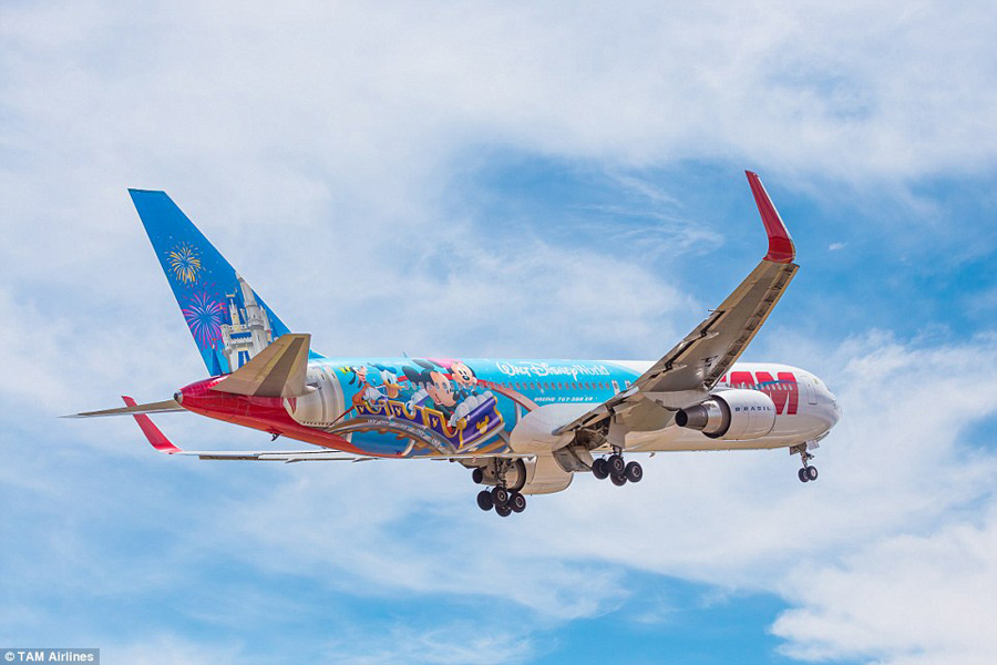 Walt Disney World, in collaboration with Brazilian airline TAM, has unveiled a colourful character-themed plane that took 10 eight-hour days to create.