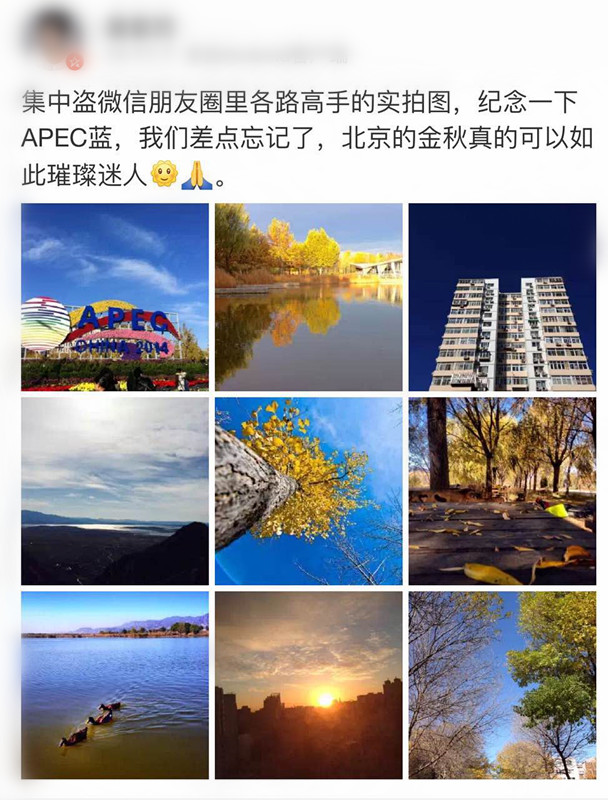 “APEC Blue” pictures posted by a Web user on Weibo, a Chinese microblogging site.