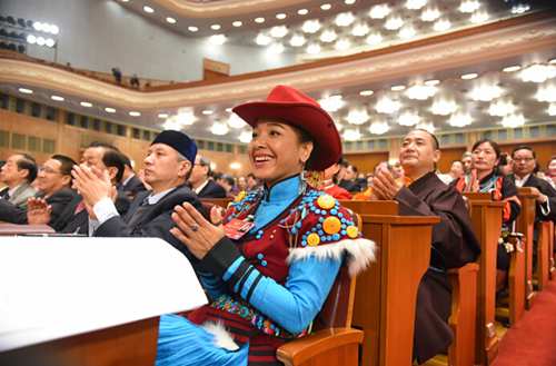 Delegates applaud during the forth Session of the 12th Chinese People's Political Consultative Conference (CPPCC) National Committee on Thursday. (Photo: Lei Sheng from People’s Daily)