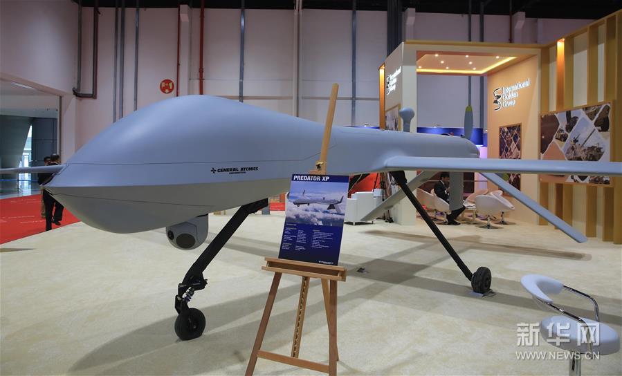 Photo taken on March 6, 2016 shows General Atomics MQ-1 Predator built by General Atomics, which are primarily used by the United States Air Force, at the second Unmanned Systems Exhibition & Conference in Abu Dhabi, United Arab Emirates. (Xinhua/An Jiang)