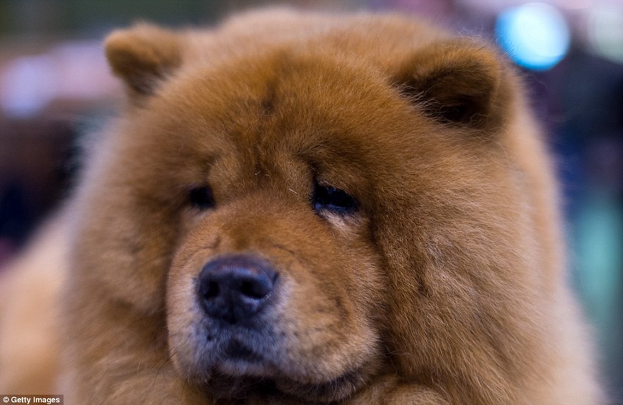 A chow chow shows off his impressive coat as he poses for a picture during the first day of the prestigious event