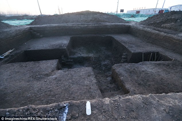 A tomb (pictured) dating from the Han Dynasty, which ruled between 206 BC to 220 AD has been found during building work on a site in a subrub of Beijing, China